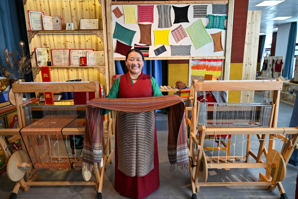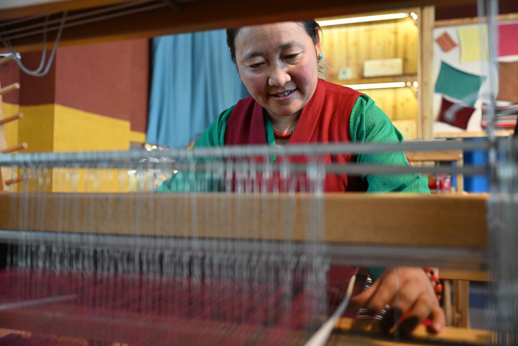 走進(jìn)江孜縣阿佳格桑氆氌農(nóng)民專業(yè)合作社,織機(jī)“咔嗒”作響,氆氌的紋理在手工藝人的手中逐漸顯現(xiàn),她們用自己的雙手編織出了更加美好的未來(lái)。