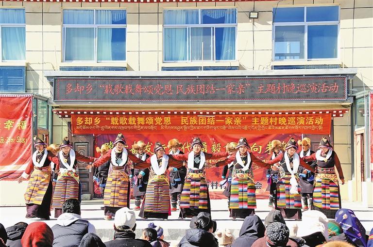 文藝是時代前進(jìn)的號角,最能代表一個時代的風(fēng)貌,最能引領(lǐng)一個時代的風(fēng)氣。連日來,來自浪卡子縣多卻鄉(xiāng)的12支行政村文藝演出隊,利用3天時間深入3個村(居),開展了以“載歌載舞頌黨恩 民族團(tuán)結(jié)一家親”為主題的文藝巡演。巡演活動中,一個個沾泥土、帶露珠的文藝節(jié)目深情表達(dá)了羊卓兒女聽黨話、感黨恩、跟黨走的堅定信念。