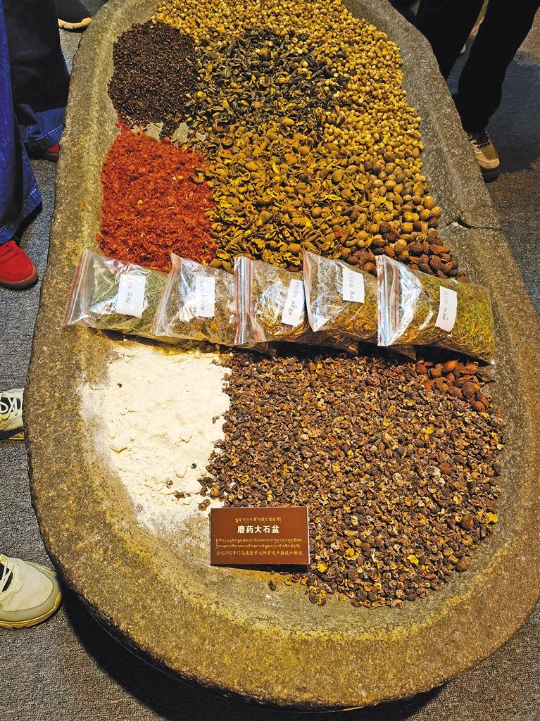 在自治區(qū)藏醫(yī)院展館中,各式各樣的藏藥材整齊排列,從珍貴的雪蓮花、紅景天、甘青青蘭到常見的藏青果、芫根、甘草應有盡有,每一種藥材都承載著藏醫(yī)對自然的敬畏?!斑@些藥材不僅形態(tài)各異,而且藥效獨特,是藏醫(yī)院治療疾病、保健養(yǎng)生的寶貴資源?!贝稳实录f。