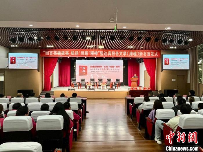 圖為報(bào)告文學(xué)《路魂》新書(shū)首發(fā)式現(xiàn)場(chǎng)?!√斓爻霭嫔?供圖