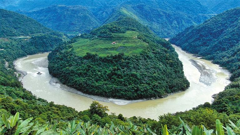 其實(shí),果果塘大拐彎里還藏著一枚新年大型“彩蛋”——這里又稱作雅魯藏布江蛇形大拐彎。由雪域高原的百川匯流而成的雅魯藏布江,在果果拉山附近繞了一個(gè)大彎。站在德興鄉(xiāng)的觀景臺(tái)上眺望,人們便會(huì)發(fā)現(xiàn)這里宛如一條碧青的長(zhǎng)蛇盤(pán)踞在蒼翠茂盛的雨林之間,蔚為壯觀。