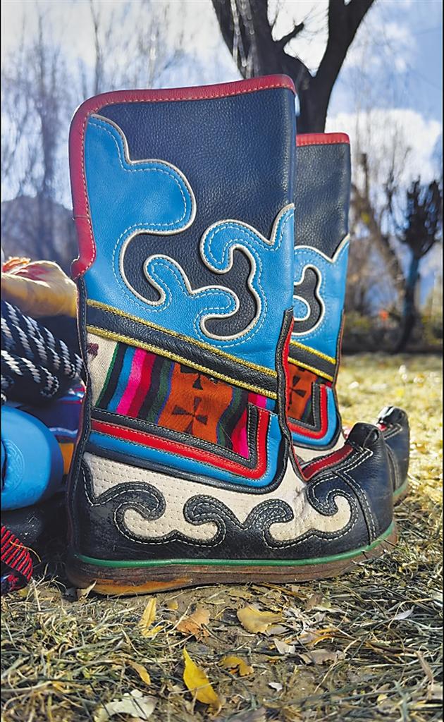 堆龍德慶區(qū)覺木隆派藏戲演員表演時穿的藏靴。(圖片均由拉薩市文化和旅游局提供)