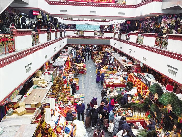 “八廓商城將年貨商家集中在一起,商戶們無需再風(fēng)吹日曬,還能免費(fèi)使用攤位。”強(qiáng)巴次仁說,“為了保障商場內(nèi)的衛(wèi)生和安全,保潔人員定時打掃衛(wèi)生,工作人員定時巡邏,全面排查各類安全隱患,既方便了商戶,也方便了老百姓?!?/p>