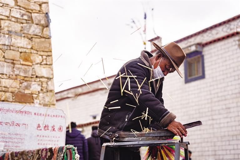 有人說,西藏的春天、夏天和秋天屬于格?;?,而冬天則屬于“羅薩梅朵”。對于桑木村的村民來說,“羅薩梅朵”不僅帶來收入,更是一種對傳統(tǒng)文化的堅守和熱愛。每年,村民們將一整間房的金黃麥穗和青稞穗備好,隨后拿出來一一上色。房內(nèi)的麥穗越來越少,村民的腰包越來越鼓,大街小巷里越來越多的人手里拿著色彩繽紛的“羅薩梅朵”,臉上洋溢著幸福的笑容。