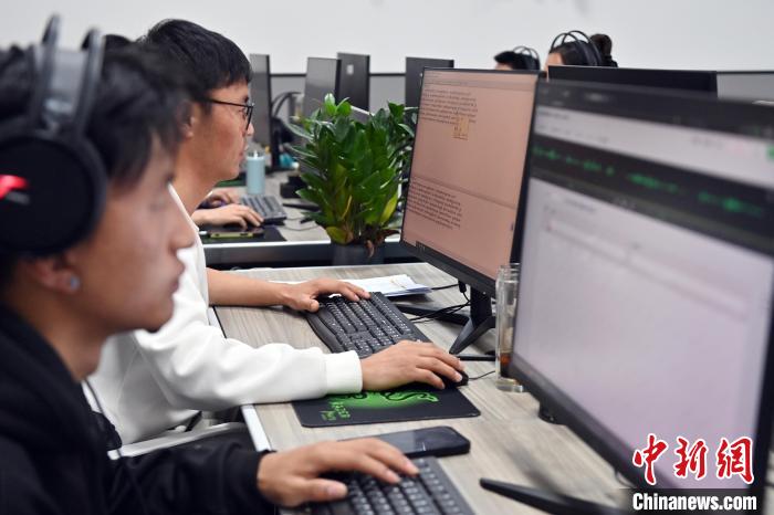 2月27日,在甘肅甘南藏族自治州碌曲縣益西達吉科技有限公司內(nèi),工作人員正在進行藏文古籍數(shù)字化相關(guān)工作。該公司主要從事民族古籍數(shù)字化建設(shè)和古籍文獻數(shù)據(jù)庫建設(shè),自2019年以來,承擔西藏、四川、甘肅等省區(qū)的藏文古籍數(shù)字化項目。圖為工作人員正在進行藏文古籍數(shù)字化工作。中新社記者 九美旦增 攝