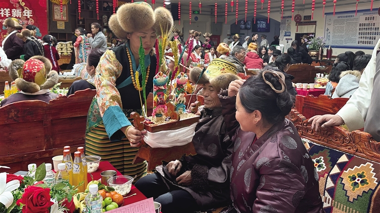 拉薩市社會(huì)福利院工作人員白央告訴記者,藏歷新年前一周,她們就為老人們洗澡、修剪指甲,對(duì)福利院進(jìn)行全面大掃除。為營造節(jié)日氛圍,還提前為老人裝扮居住環(huán)境,掛上紅燈籠,擺上切瑪盒等?!斑@是我在福利院工作的第二年。藏歷新年雖不能陪伴在父母身邊,但與老人們一同過年,讓我深感幸福且意義重大。”