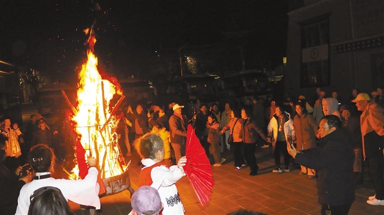 圖為游客和當地群眾在篝火前共同起舞。記者 武沛濤 攝
