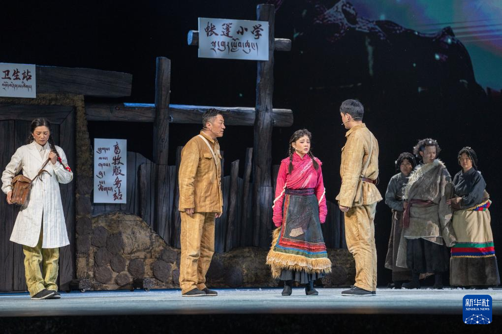 話劇《珠穆朗瑪》首演現(xiàn)場(3月31日攝)。新華社記者 旦增尼瑪曲珠 攝