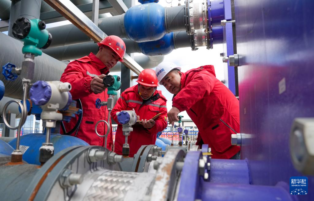 4月26日,西藏錦杭新能源有限責(zé)任公司工作人員在檢查換熱站運(yùn)行工況。新華社記者 晉美多吉 攝