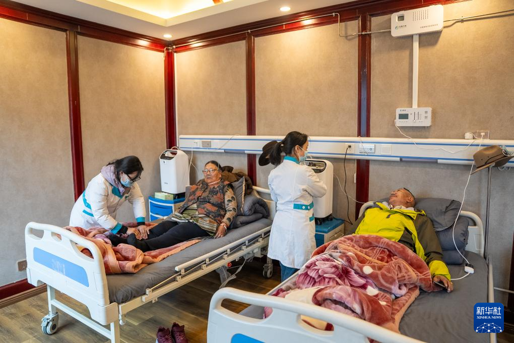 4月25日,老人們在那曲市色尼區(qū)老年人日間照料中心做理療。新華社記者 丁增尼達 攝