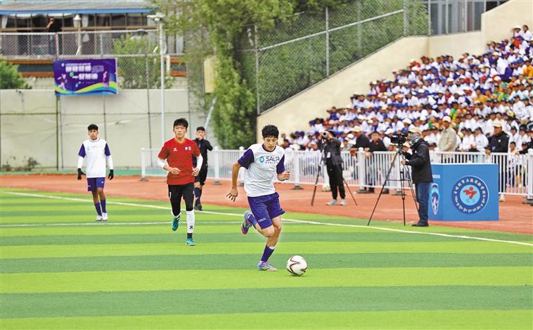 以球?yàn)槊剑扒颉蓖妗罢x”。5月20日下午,中國日喀則市珠峰雪鷹隊(duì)與阿根廷薩爾塔普納隊(duì)在日喀則市上海實(shí)驗(yàn)學(xué)校體育場上演了一場跨越山海的青少年足球友誼賽。賽場上,雙方球員迅速進(jìn)入狀態(tài),團(tuán)結(jié)配合、積極拼搶,用細(xì)膩的腳法,或急停、或變向、或假動作,輕松晃過對手,射門得分,給觀眾呈現(xiàn)了一場精彩的足球比賽。