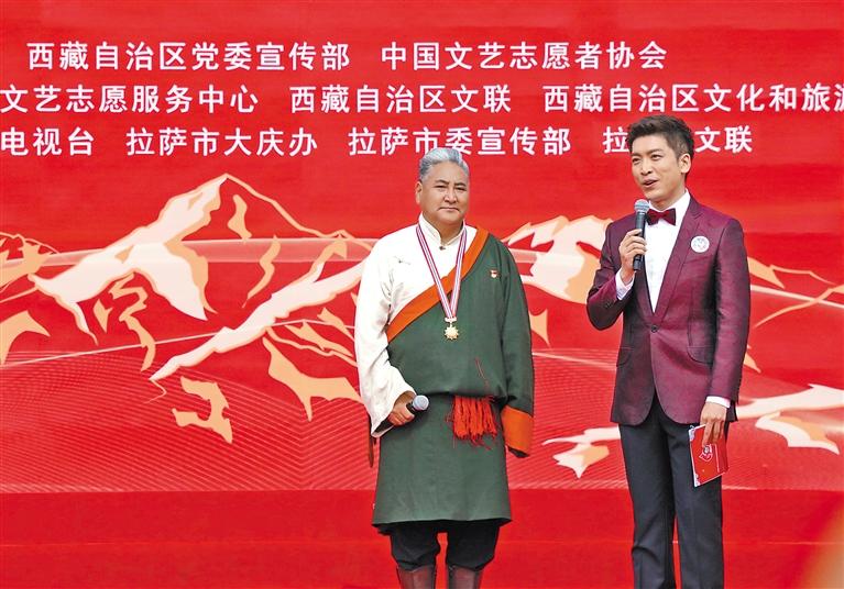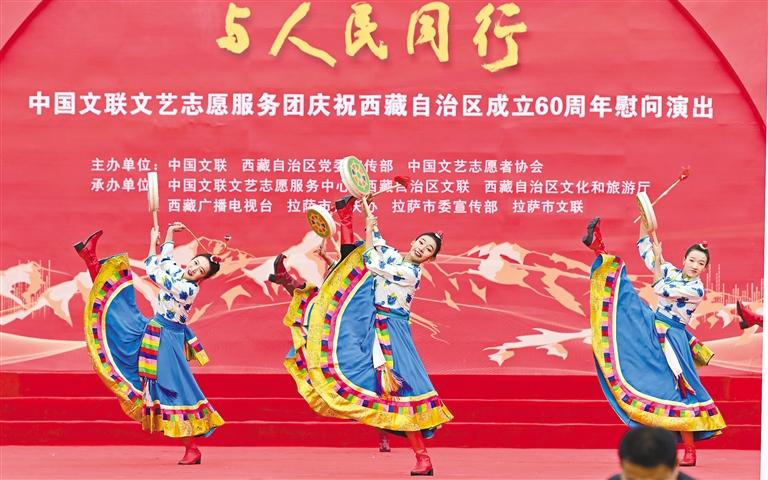 5月23日,在中國(guó)文藝志愿者服務(wù)日到來之際,由中國(guó)文聯(lián)、西藏自治區(qū)黨委宣傳部、中國(guó)文藝志愿者協(xié)會(huì)共同主辦的“與人民同行”慰問演出在西藏會(huì)展中心廣場(chǎng)隆重舉行。這場(chǎng)慶祝西藏自治區(qū)成立60周年的文藝盛宴,在歌舞《鼓舞西藏》激昂的節(jié)奏中拉開帷幕。