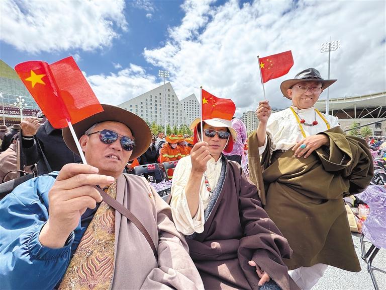 演出中,不同民族的文藝志愿者齊聚一堂。漢族、藏族、蒙古族、彝族等各民族藝術(shù)家攜手合作,用藝術(shù)搭建起溝通的橋梁。他們用歌聲、舞蹈、相聲、朗誦等多種藝術(shù)形式,深情歌頌新時(shí)代黨的治藏方略,生動(dòng)展現(xiàn)西藏自治區(qū)成立60年來的滄桑巨變,傳遞民族團(tuán)結(jié)的深厚情誼,讓現(xiàn)場(chǎng)觀眾沉浸在藝術(shù)的氛圍中。