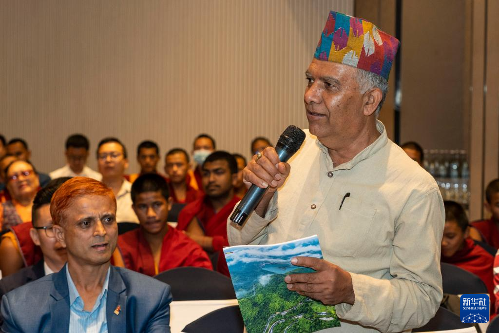 6月24日,一名與會(huì)者在尼泊爾加德滿(mǎn)都舉辦的交流會(huì)上提問(wèn)。新華社發(fā)(哈里·馬哈爾詹攝)
