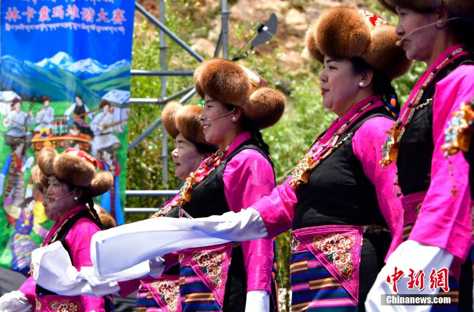 6月28日,拉薩首屆林卡囊瑪堆諧大賽在達(dá)孜區(qū)舉辦。現(xiàn)場(chǎng),經(jīng)過(guò)前期海選入圍的19支隊(duì)伍依次上臺(tái)競(jìng)技。囊瑪和堆諧,合稱囊瑪堆諧,是西藏民間歌舞發(fā)展到較高層次、集歌舞樂(lè)為一體的珍貴傳統(tǒng)文化藝術(shù)遺產(chǎn),深受當(dāng)?shù)孛癖姷南矏?ài)與追捧。圖為首屆林卡囊瑪堆諧大賽比賽現(xiàn)場(chǎng)。