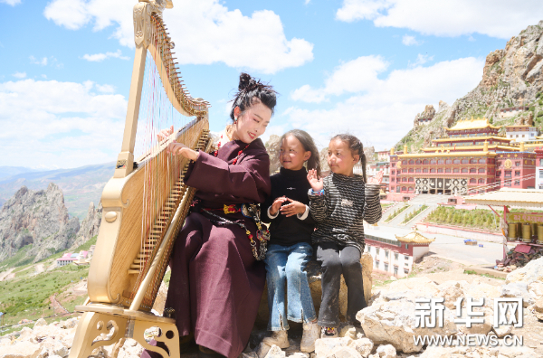 中央民族樂(lè)團(tuán)著名箜篌演奏家吳琳為藏族小朋友演奏箜篌