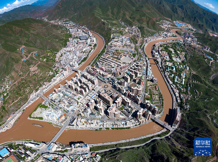 鳥(niǎo)瞰扎曲河和昂曲河交匯處的昌都市。新華社記者 姜帆 攝