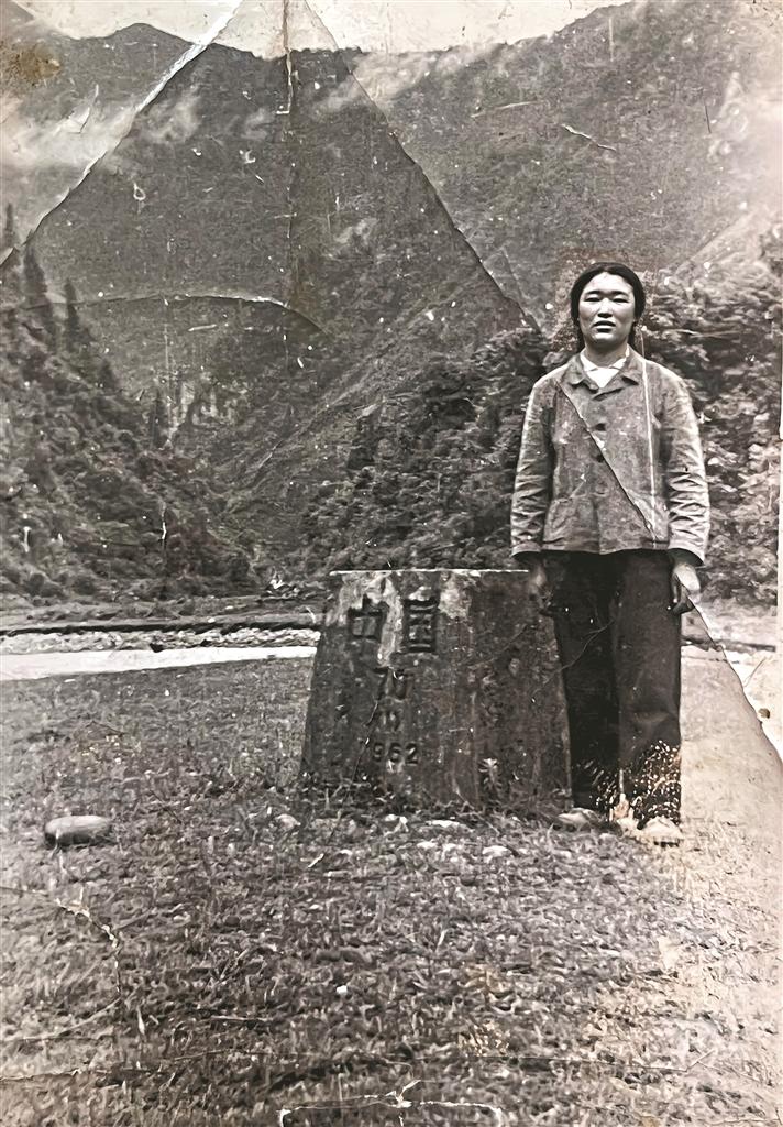 第一張照片總是最引人注目——拍攝于1965年的黑白相片里,年輕的石達普芝站在中尼邊境界碑旁,她腳上穿的是沾滿泥巴的布鞋,身后是茫茫的大山。
