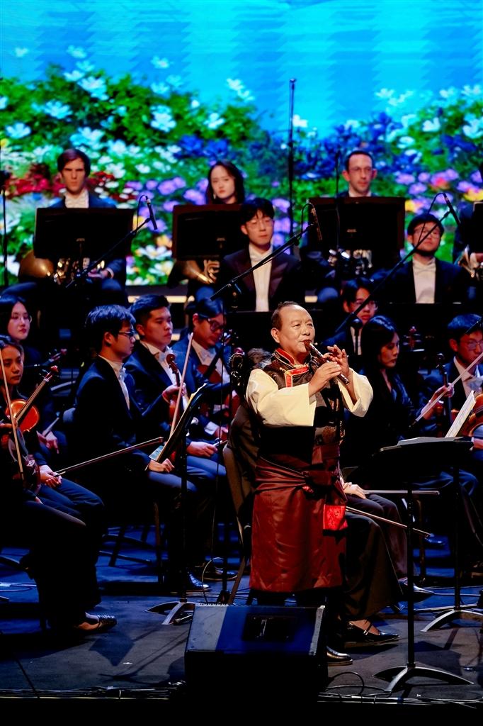 藝術(shù)形式的創(chuàng)新融合是本次音樂(lè)會(huì)的一大亮點(diǎn)。二重唱《茉莉與格?!穬?yōu)美詮釋了民族文化的交流共生;器樂(lè)演奏《“飛弦踏春”與“賽馬”》則讓著名二胡演奏家陳軍的激昂琴聲與扎念琴演奏員措姆的熱情彈奏展開(kāi)對(duì)話,碰撞出令人振奮的藝術(shù)火花。從展現(xiàn)拉薩當(dāng)代生活的電視劇插曲《藍(lán)天上的云》,到描繪鄉(xiāng)村振興新貌的《童話里的格林村》,再到融合原生態(tài)山歌與專業(yè)唱法、曾為中央代表團(tuán)獻(xiàn)唱的《珠穆朗瑪》,一系列新創(chuàng)作品生動(dòng)展現(xiàn)了傳統(tǒng)與現(xiàn)代交織、充滿活力的社會(huì)主義新西藏。