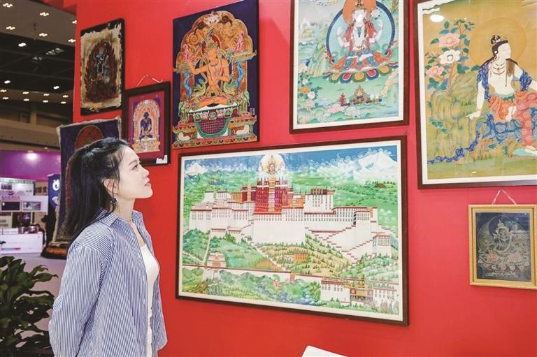 場(chǎng)館外,熱情奔放的康巴歌舞洋溢著濃郁的民族風(fēng)情。走進(jìn)場(chǎng)館內(nèi)部,可以近距離體驗(yàn)藏香制作和飄逸靈動(dòng)的藏文書(shū)法。唐卡漆畫(huà)、民族手工飾品等藏東文化和蟲(chóng)草、貝母、藏紅花等特色產(chǎn)品琳瑯滿目,更有邊壩三色湖、貢覺(jué)拉妥濕地、芒康千年鹽田、洛隆俄西杏花等雪域美景,進(jìn)館咨詢互動(dòng)的企業(yè)、嘉賓絡(luò)繹不絕。