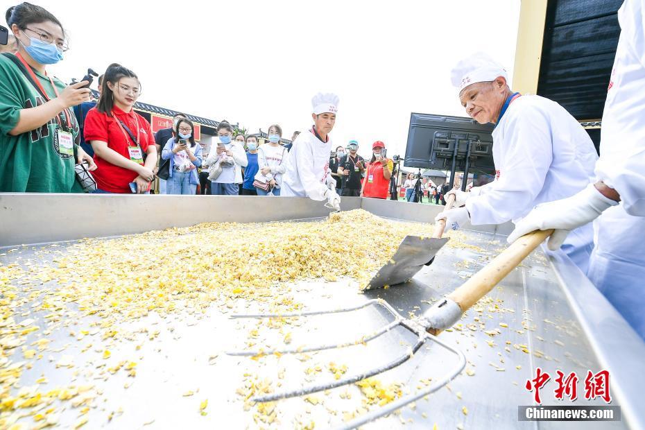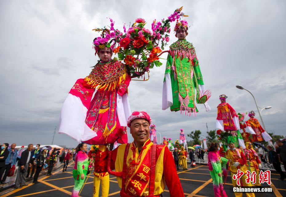 9月23日,山西晉中,當?shù)孛癖姳硌萆缁饝c祝豐收節(jié)。當日,2021年中國農(nóng)民豐收節(jié)山西慶祝活動暨第七屆中國(山西)特色農(nóng)產(chǎn)品交易博覽會在晉中國家農(nóng)高區(qū)(山西省農(nóng)產(chǎn)品國際交易中心)開幕。 中新社記者 張云 攝