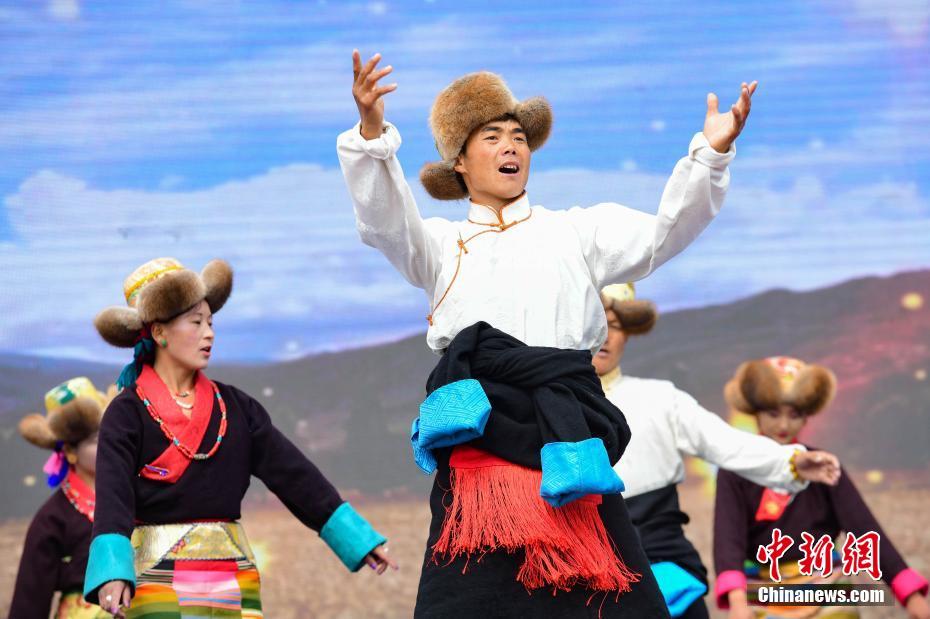 9月23日,“中國農(nóng)民豐收節(jié)”西藏慶?;顒釉诶_市墨竹工卡縣舉行,當?shù)孛癖娸d歌載舞,慶?!柏S收節(jié)”。 中新社記者 貢嘎來松 攝
