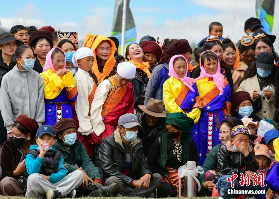 9月23日,“中國農(nóng)民豐收節(jié)”西藏慶?;顒釉诶_市墨竹工卡縣舉行,當?shù)孛癖娸d歌載舞,慶?!柏S收節(jié)”。圖為慶?;顒游笈^眾。 中新社記者 貢嘎來松 攝