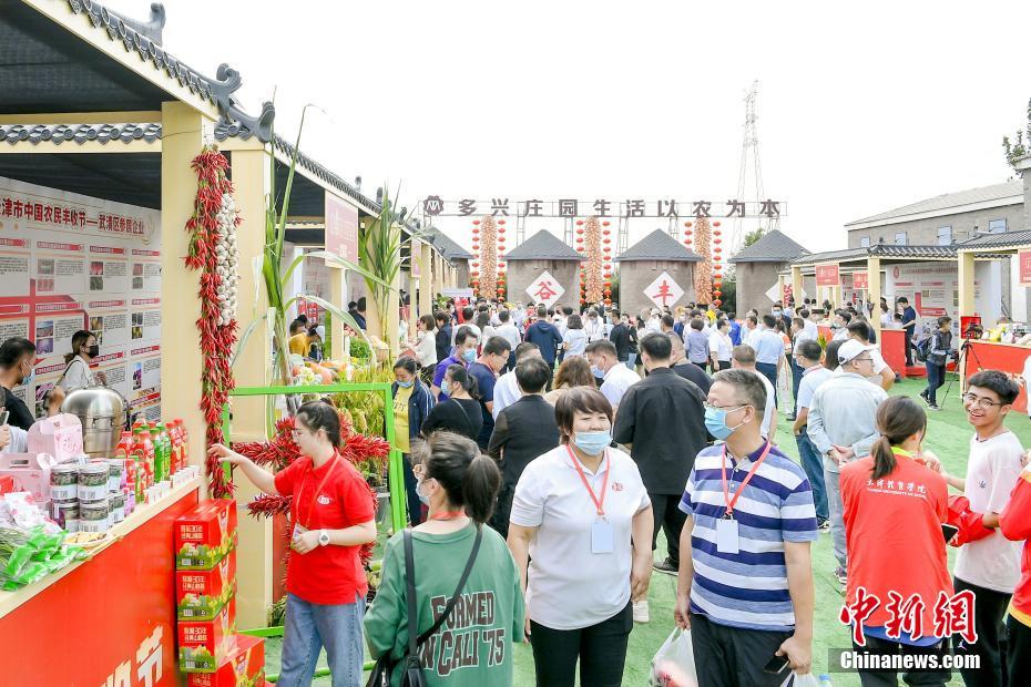 9月23日,2021中國農(nóng)民豐收節(jié)河南省主會場在焦作市武陟縣嘉應(yīng)觀啟幕?;顒蝇F(xiàn)場,隨處可見“豐收”符號,各類農(nóng)副產(chǎn)品琳瑯滿目,船上漁民捧著魚喜笑顏開。圖為農(nóng)產(chǎn)品亮相河南省主會場。闞力 攝