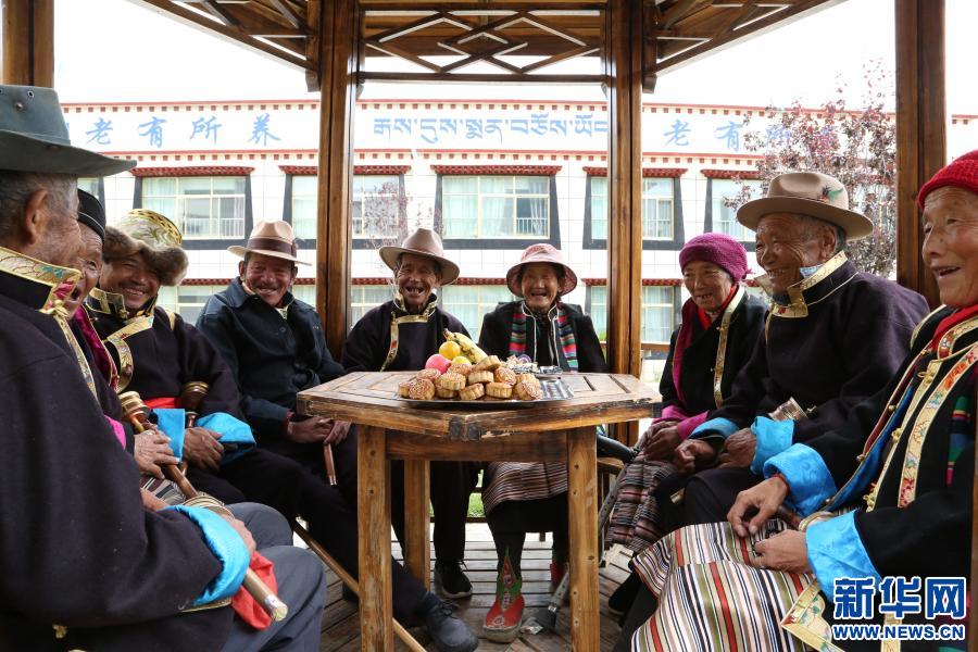 西藏山南市瓊結(jié)縣五保戶集中供養(yǎng)中心的老人們在過中秋佳節(jié)(2016年9月14日攝)。新華社記者 普布扎西 攝 在社會保障資金投入方面,西藏完善了城鄉(xiāng)居民最低生活保障制度,最低保障標準分別達到月人均847元、年人均4713元。同時,五保供養(yǎng)和孤兒收養(yǎng)實現(xiàn)“雙集中”,農(nóng)村特困人員集中供養(yǎng)救助生活補助達到年人均13213元,分散供養(yǎng)救助生活補助達到年人均7070元。