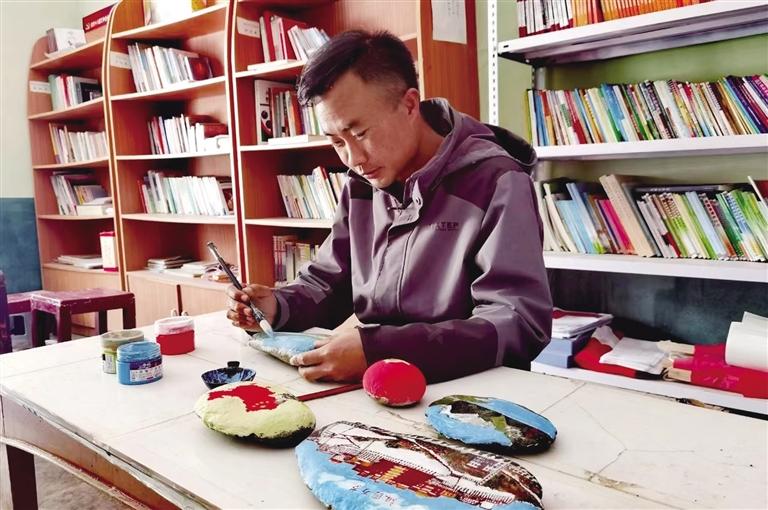 張銀波駐村期間,通過(guò)手繪石頭畫(huà)慶祝中國(guó)共產(chǎn)黨成立100周年。