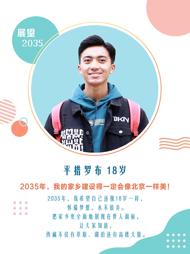 黨的十九屆五中全會(huì)提出,到2035年基本實(shí)現(xiàn)社會(huì)主義現(xiàn)代化。你期待2035年的到來嗎?在你心中,2035年的中國會(huì)是什么樣?未來15年,你有哪些大規(guī)劃、小目標(biāo)?中國西藏網(wǎng)策劃推出系列海報(bào),本期帶你走進(jìn)少年們關(guān)于2035年的展望與暢想。