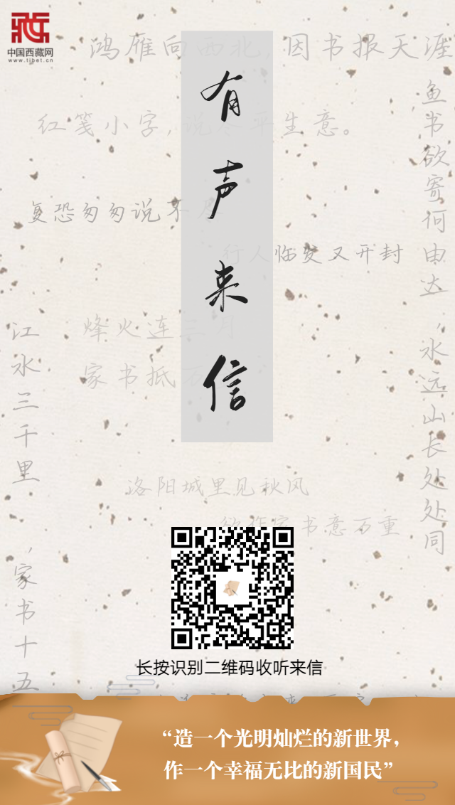 【編者按】穿越歲月長河,翻開一封封紅色家書,感受筆端下的家國情懷和人間煙火。一紙書信明志向,一紙書信道親情,家書中浸透著硝煙與血汗,澎湃著奮斗與信仰,在中國共產(chǎn)黨成立100周年之際,中國西藏網(wǎng)推出融媒體產(chǎn)品[有聲來信],從紙短情長中重溫波瀾壯闊的歷史,感悟革命先輩的心路情懷。本期內(nèi)容為:造一個(gè)光明燦爛的新世界,作一個(gè)幸福無比的新國民