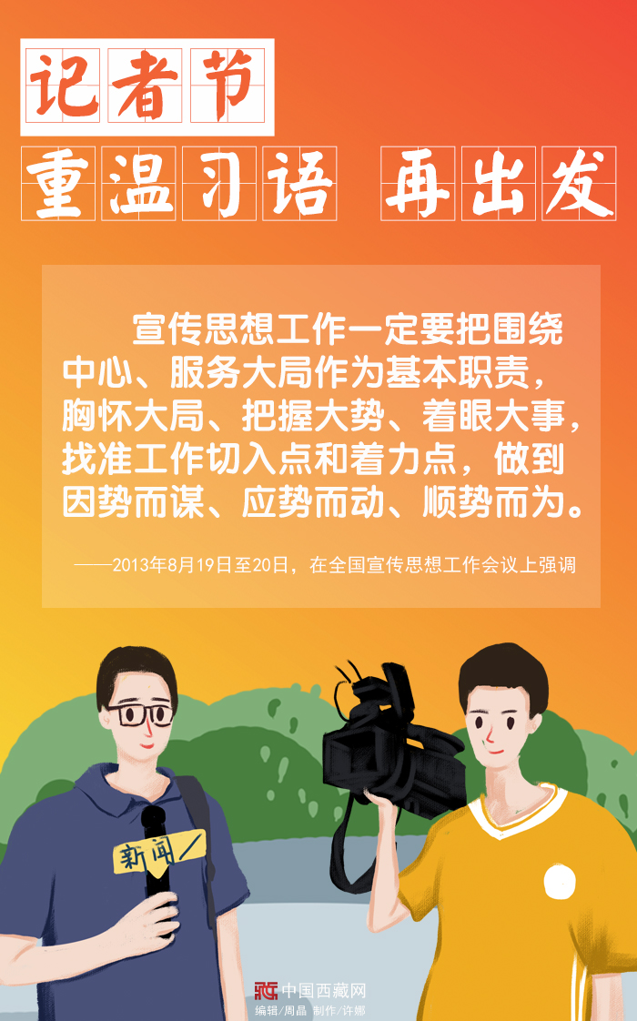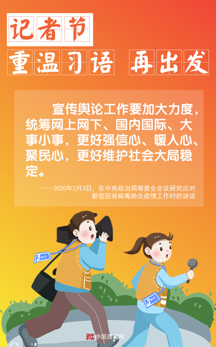 此刻,節(jié)日的主角們或在新聞現(xiàn)場忙碌著,或在抗疫一線記錄著,或在奮筆疾書書寫著……一直以來,習近平總書記十分關心新聞工作者,并提出了許多殷切希望。在這個特別的日子里,讓我們重溫總書記囑托,強化責任擔當再出發(fā)。(中國西藏網(wǎng) 編輯/周晶 制作/許娜)