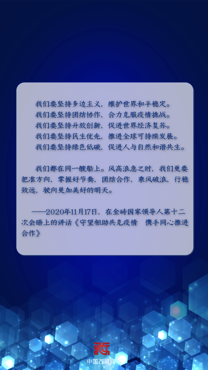 讓我們攜起手來,堅(jiān)持和平、發(fā)展、合作、共贏,共同解決當(dāng)前世界經(jīng)濟(jì)以及國際貿(mào)易和投資面臨的問題,一起走向更加美好的未來! [詳細(xì)]