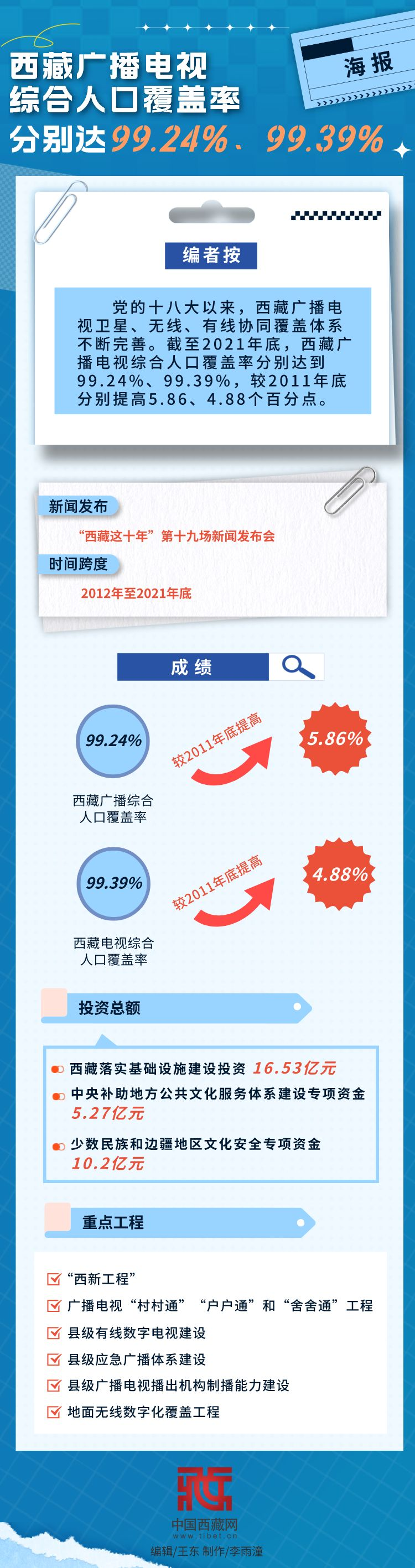 海報|西藏廣播電視綜合人口覆蓋率分別達99.24%、99.39%
