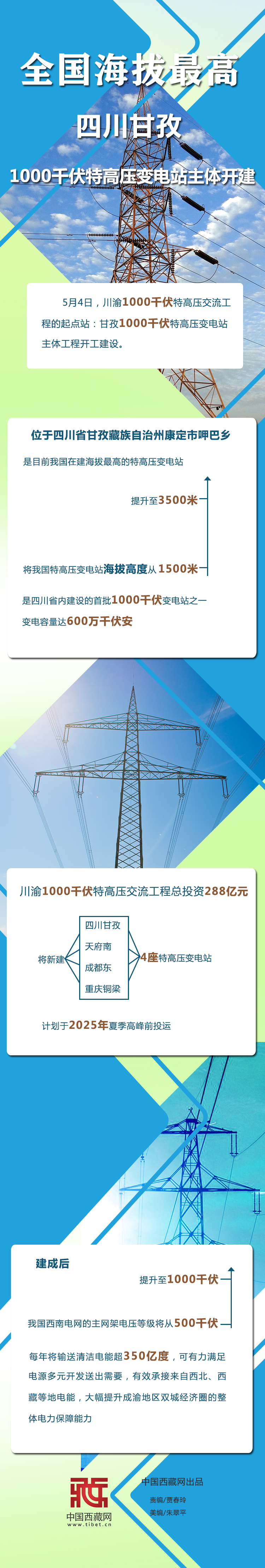 圖解|全國海拔最高 四川甘孜1000千伏特高壓變電站主體開建