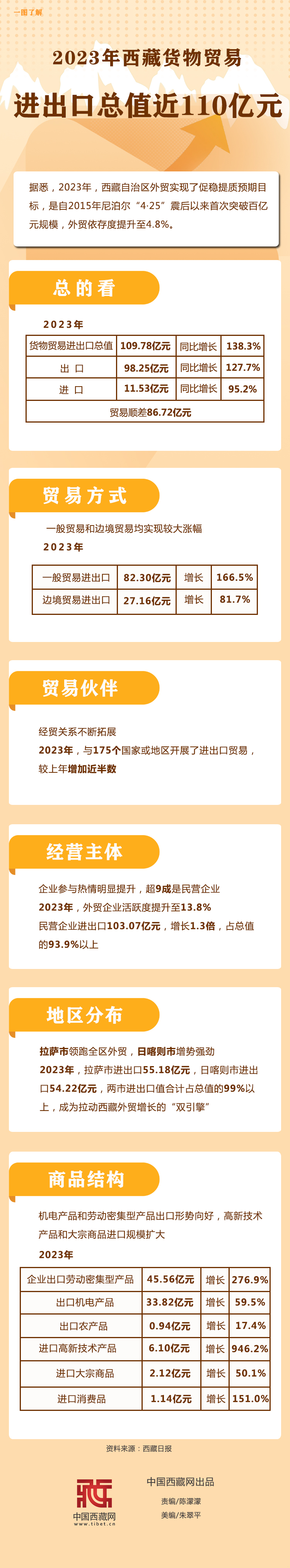 一圖了解:2023年西藏貨物貿易進出口總值近110億元