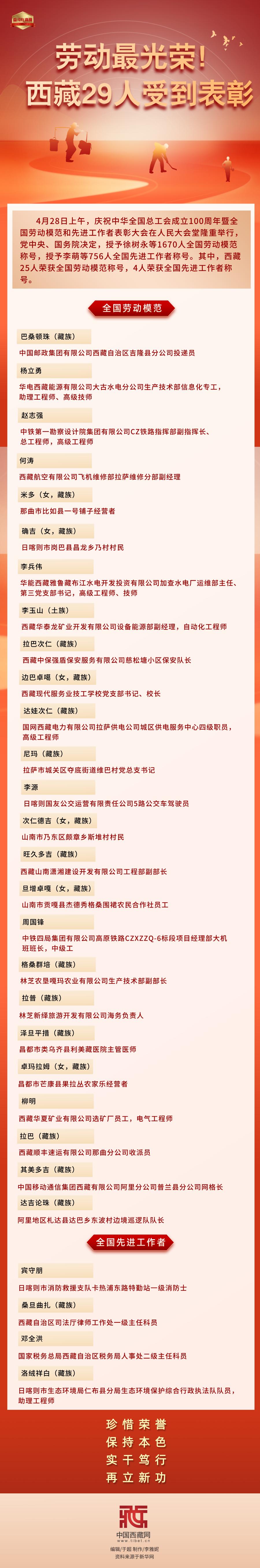 【奮斗在高原】勞動(dòng)最光榮!西藏29人受到表彰