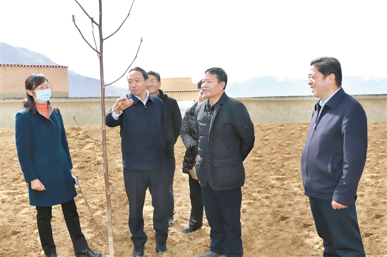 23日,西藏自治區(qū)黨委常委、拉薩市委書記白瑪旺堆赴拉薩市南北環(huán)沿線、柳梧隧道等地調(diào)研造林綠化工作。圖為白瑪旺堆在調(diào)研城關(guān)區(qū)娘熱街道核桃種植項目。拉薩融媒記者 趙 慧攝