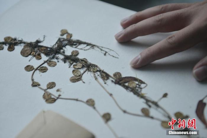 圖為保存于中科院成都生物所標(biāo)本館里的貝葉芒毛苣苔。中新社記者 張浪 攝