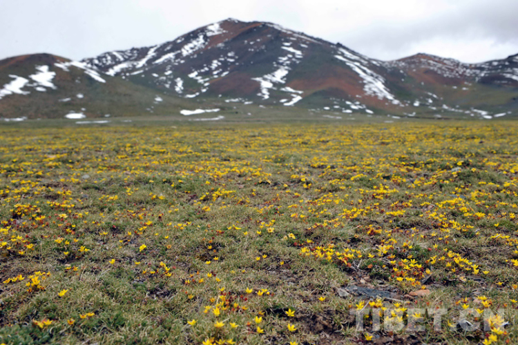 這是藏北高原所綻放的成片金露梅植被(唐召明2013年7月27日攝)