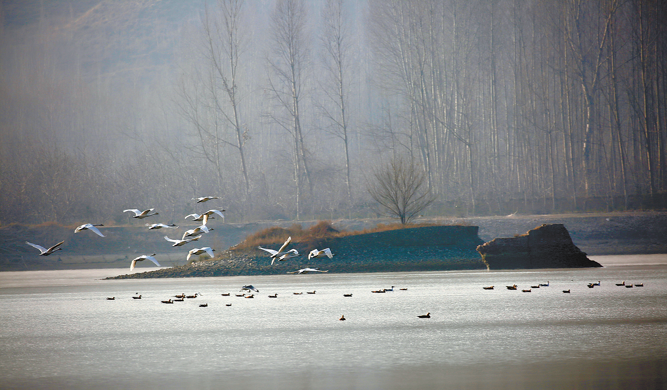 上百只大天鵝“棲息”公伯峽庫(kù)區(qū)
