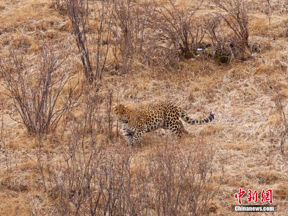 近日,在三江源國(guó)家公園瀾滄江源園區(qū)昂賽保護(hù)分區(qū)內(nèi),當(dāng)?shù)匾晃荒撩窈蜕鷳B(tài)體驗(yàn)者,分別拍攝到珍貴的金錢豹畫面。三江源國(guó)家公園是中國(guó)首個(gè)國(guó)家公園體制試點(diǎn),包括長(zhǎng)江源(可可西里)、黃河源、瀾滄江源三個(gè)園區(qū)在內(nèi)的“一園三區(qū)”,是青藏高原生態(tài)系統(tǒng)的典型代表,分布雪豹、金錢豹、藏羚羊、黑頸鶴等珍稀物種,被稱“高原野生動(dòng)物王國(guó)”“高寒生物種質(zhì)資源庫(kù)”。圖為女性牧民仁青央忠拍攝的金錢豹。 仁青央忠 攝