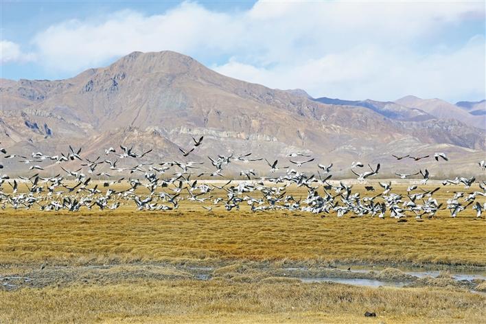43歲的藏族女巡護(hù)員格桑卓瑪,指著不遠(yuǎn)處說起了變化:“以前鳥很怕人,數(shù)量也不多,現(xiàn)在,鳥不怕人,以地里青稞穗為食,都到這里來越冬?!?/p>