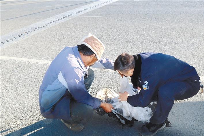 民警迅速到達(dá)現(xiàn)場了解得知:報(bào)案人普某路過年楚河大橋時(shí)發(fā)現(xiàn)一只飛行中的鳥撞到電線后落地,導(dǎo)致其右側(cè)翅膀受傷,無法正常飛行,遂報(bào)警求助。經(jīng)過仔細(xì)觀察,民警懷疑該鳥為國家一級保護(hù)動物——黑頂鶴,于是在上報(bào)指揮中心的同時(shí),與桑珠孜區(qū)林業(yè)局取得聯(lián)系。