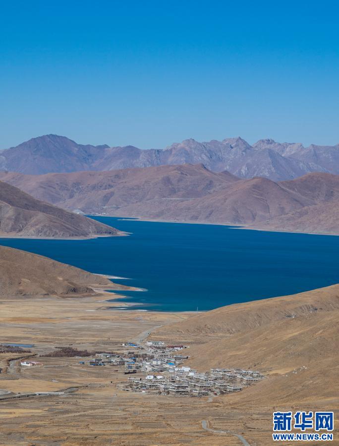 這是1月10日拍攝的羊卓雍錯(cuò)湖邊的村莊。新華社記者 孫非 攝
