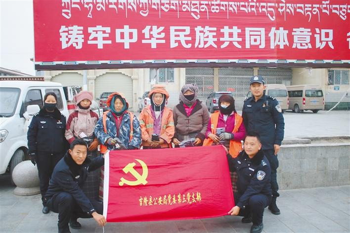 圖為吉隆縣公安局黨委第三黨支部民警與“城市美容師”們合影。張黎黎 攝