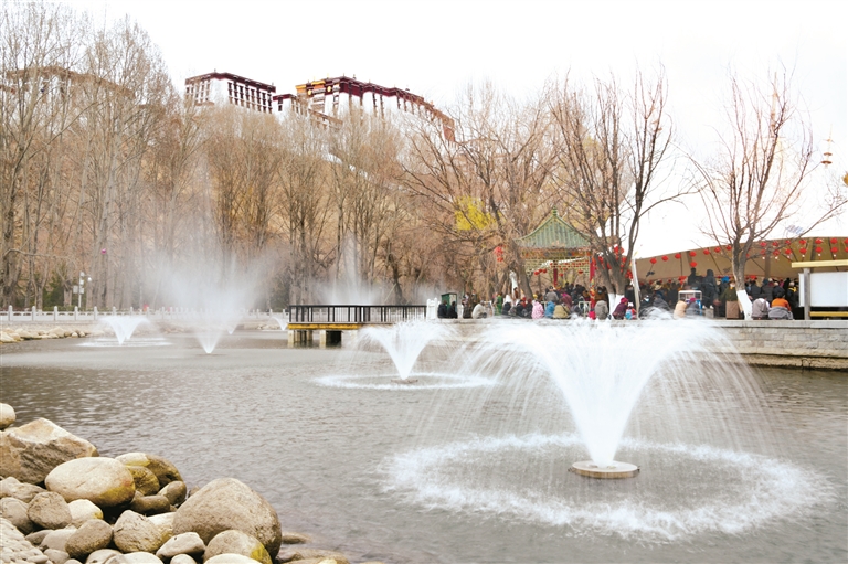 近日,布達(dá)拉宮廣場管理處在宗角祿康公園兩處觀景湖內(nèi)新增的16個噴泉已對外開放。記者在宗角祿康公園內(nèi)看到,許多市民游客在湖邊散步、拍照、駐足欣賞噴泉,享受著公園內(nèi)舒適的環(huán)境。