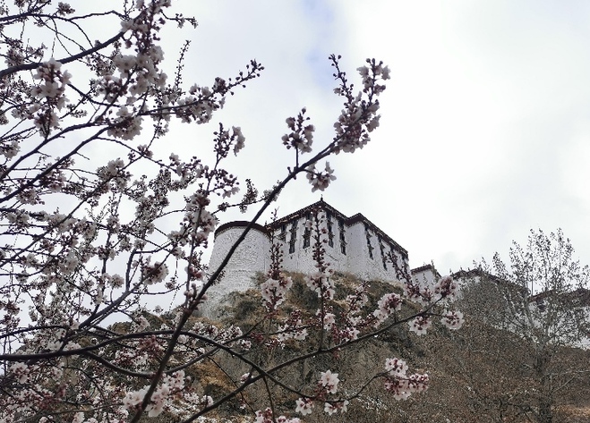 3月23日,拉薩龍王潭寺廟內的杏花、桃花等已經綻放。江飛波 攝