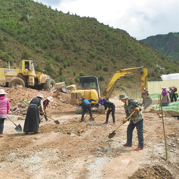 圖為農(nóng)牧民群眾積極參與道路工程建設(shè)。(圖片由昌都市卡若區(qū)脫貧攻堅指揮部提供)